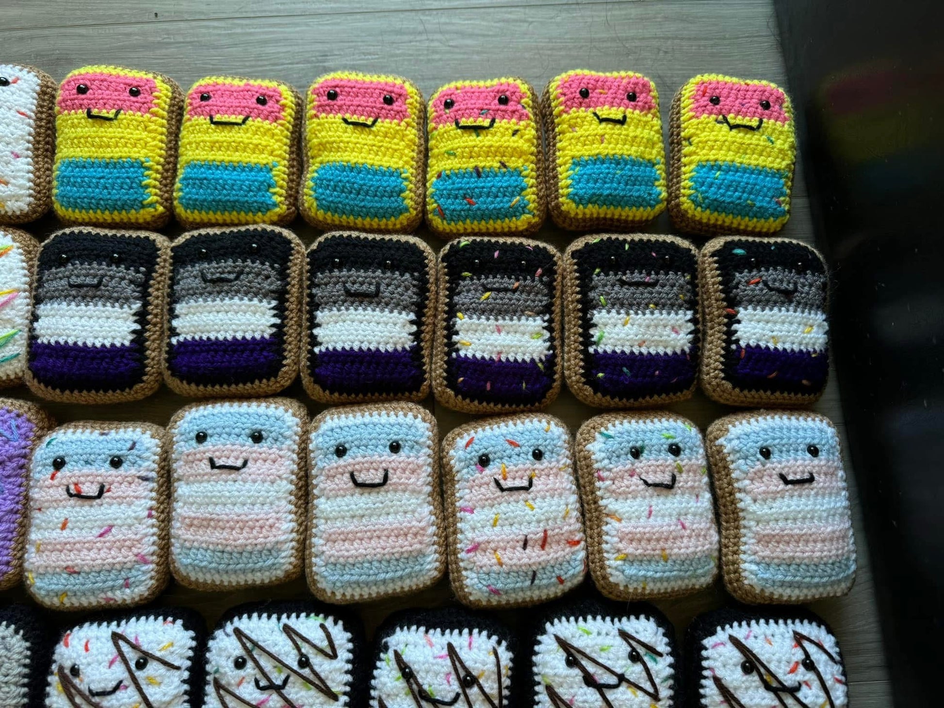 Adorable crochet poptarts available for a nice squish! If you pick a pride flag- please note which flag in the comments! Any flag can be made not just what’s in the picture